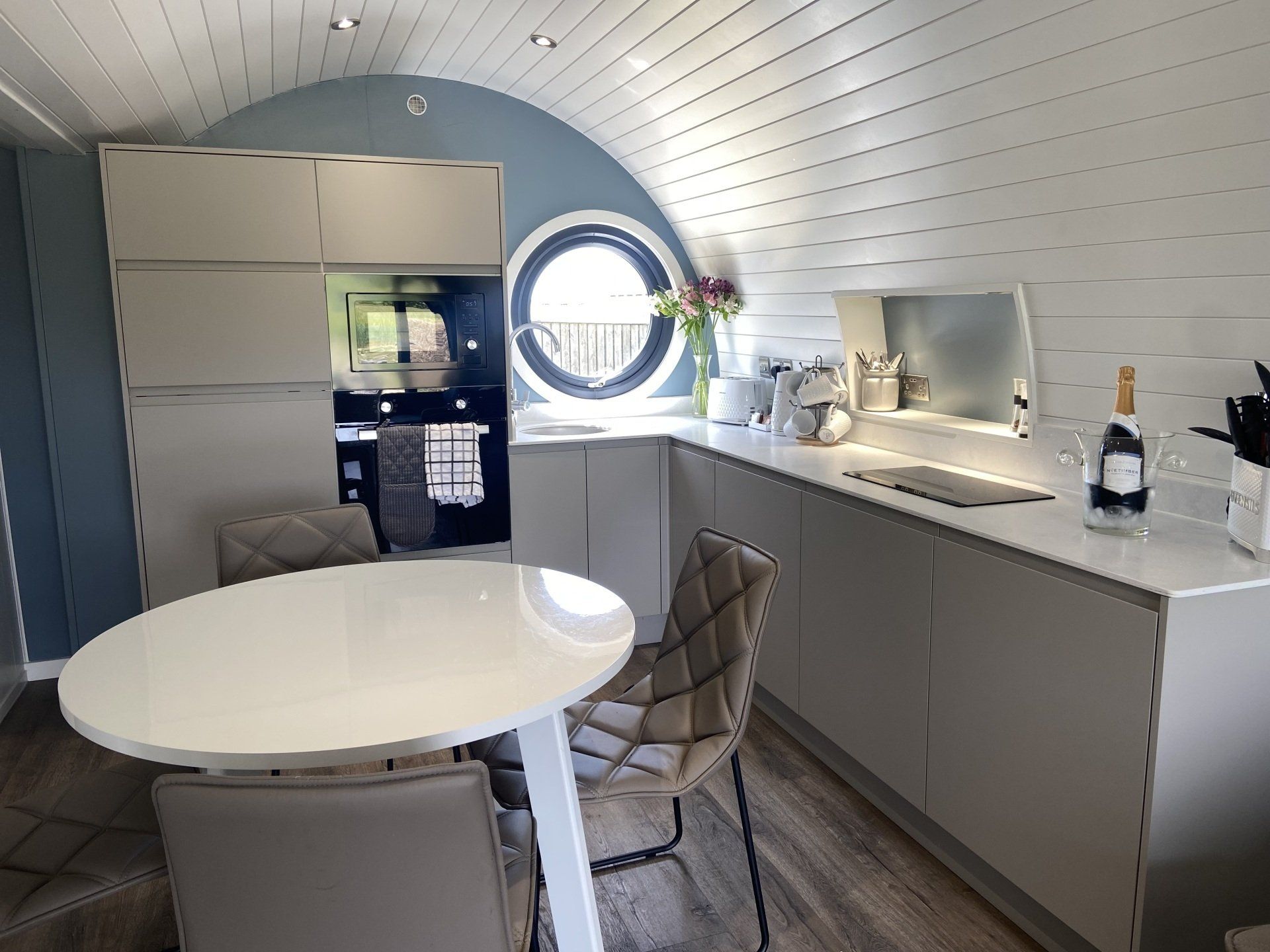 The living area has a large 4-seater sofa and a smart TV so you can log in to watch your Netflix favourites.